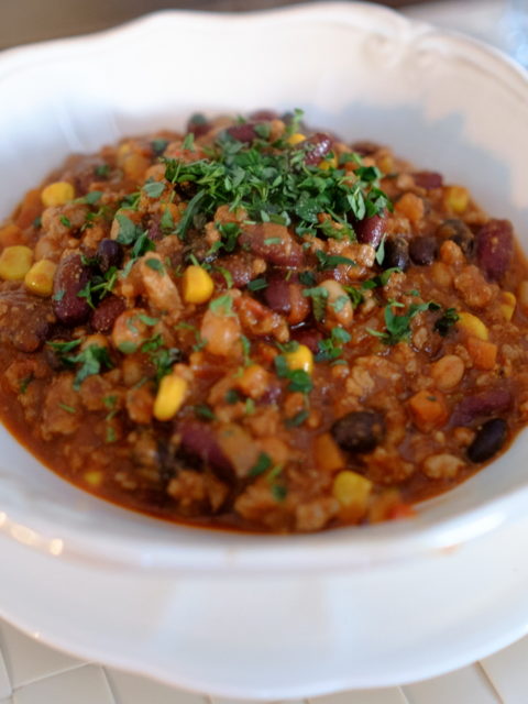 Mielona wołowina, kukurydza , fasola, pomidory i ostre chili. Kmin i oregano…