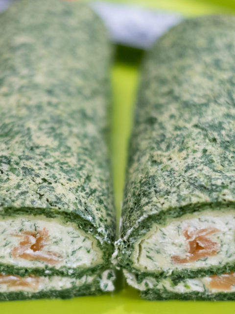 Szpinakowa rolada z serkiem i łososiem
