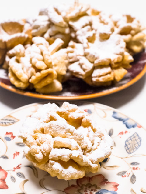 Ciasto faworkowe z dodatkiem wódki, usmażone na głębokim tłuszczu w kształt kwiatów…