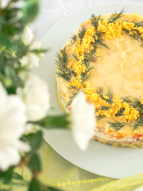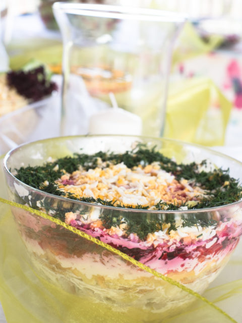 Sałatka została wykonana na przyjęcie komunijne i dlatego sardynki z puszki zamieniłem…