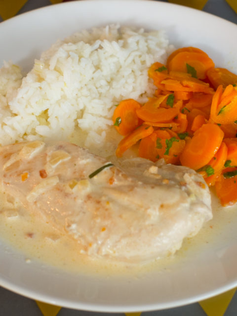 Pierś kurczaka w winno-śmietanowym sosie