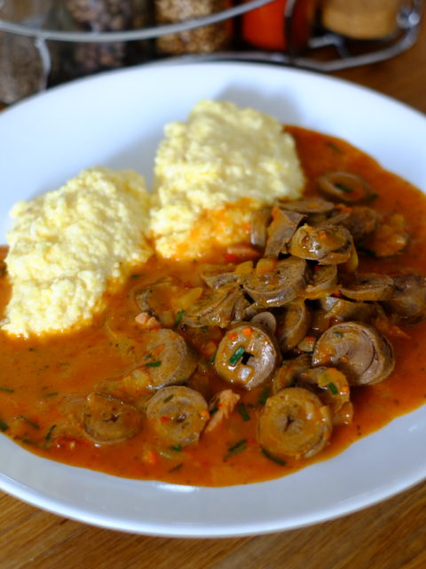 Paprykarz z serduszek drobiowych i mamałyga
