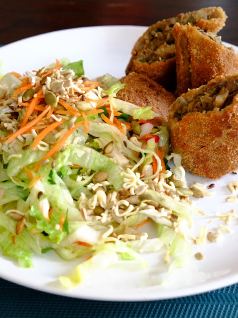 Wegańskie krokiety z soczewicą i chrupiąca surówka