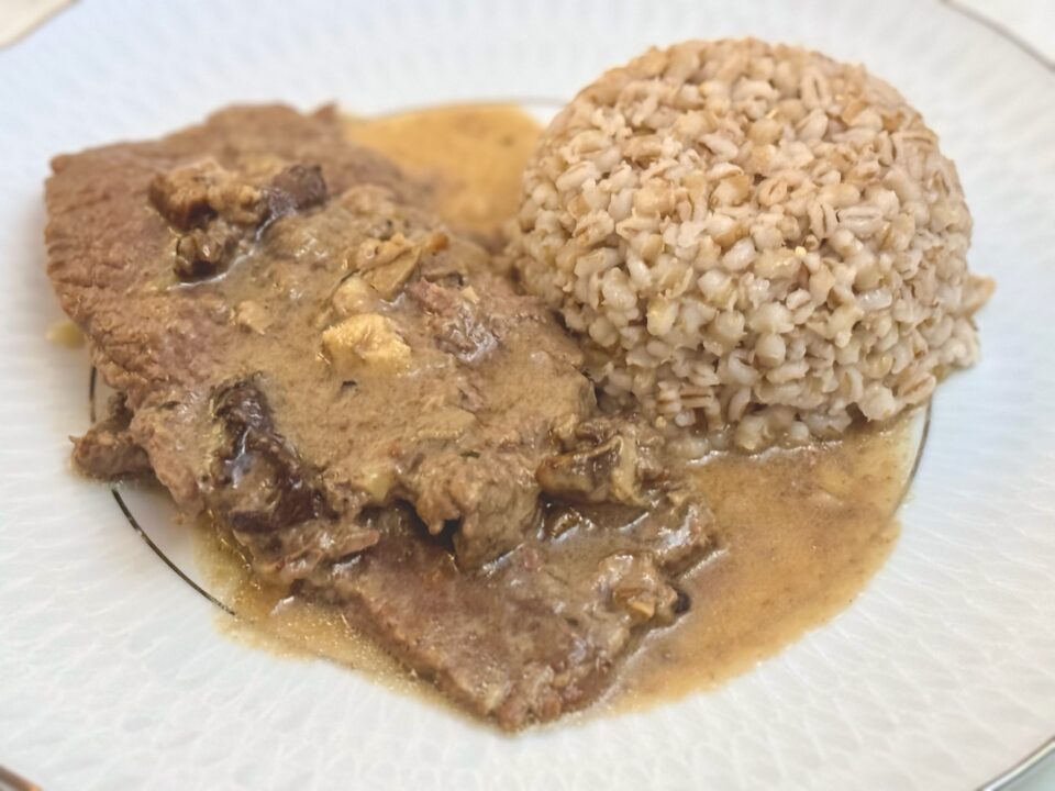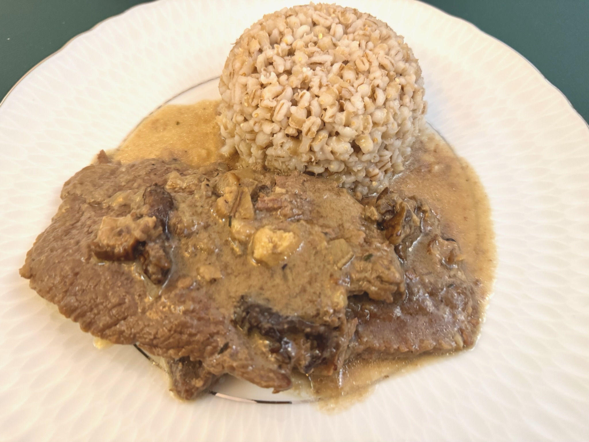 Gdy kupiłem kawałek wołowiny od razu pomyślałem o suszonych grzybach, których słój dostałem od siostry. Bitki wołowe z sosem grzybowym być muszą. Obowiązkowo z kaszą. Jako, że gryczana mi już „wyszła”, a pęczak jeszcze był, ugotowałem więc garnek jęczmiennego pęczaku . Chyba nawet pasował jeszcze bardziej niż gryczana. Do tego ogórek kiszony lub buraczki i wspaniały, jesienny obiad gotowy.