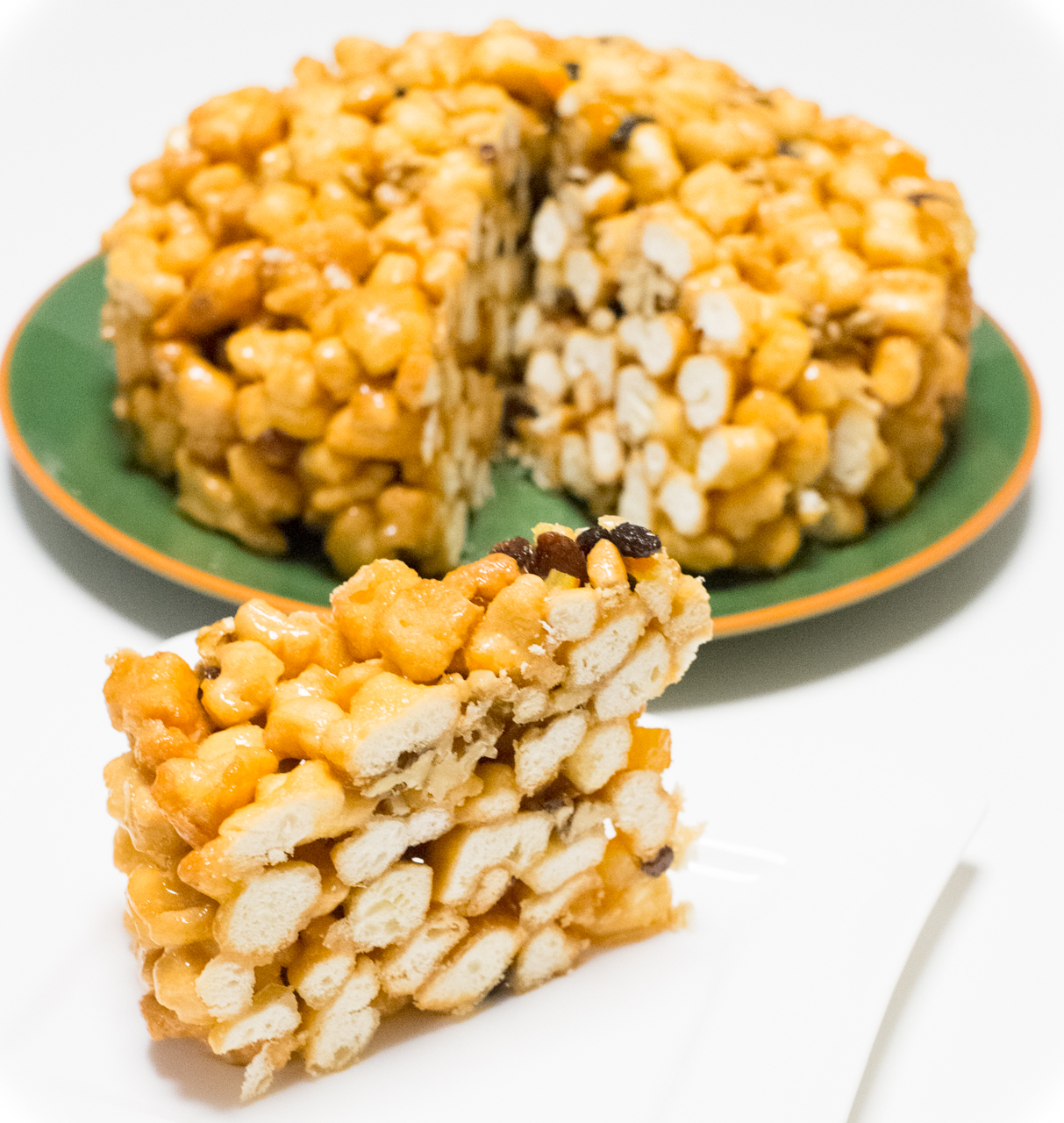 Miód roztapiamy w garnku . Gdy jest już lejący dodajemy cukier i mieszamy aż cukier się rozpuści . Zagotowujemy i gotujemy syrop do nitki ( temp. 120 stopni C). Zdejmujemy garnek z ognia, dolewamy wodę z kwiatów pomarańczy i mieszamy syrop jeszcze 3 minuty. Do miski przekładamy usmażone ciasteczka , dodajemy bakalie i polewamy gorącym syropem. Mieszamy wszystko aby syrop pokrył równomiernie ciasteczka i bakalie. Zmoczonymi w zimnej wodzie formujemy na talerzu kształt kopca czy jurty. Ciasteczka powinny dobrze przylegać do siebie ale nie mogą być zmiażdżone. Odstawiamy na 3-4 godziny. Kroić ostrym nożem.