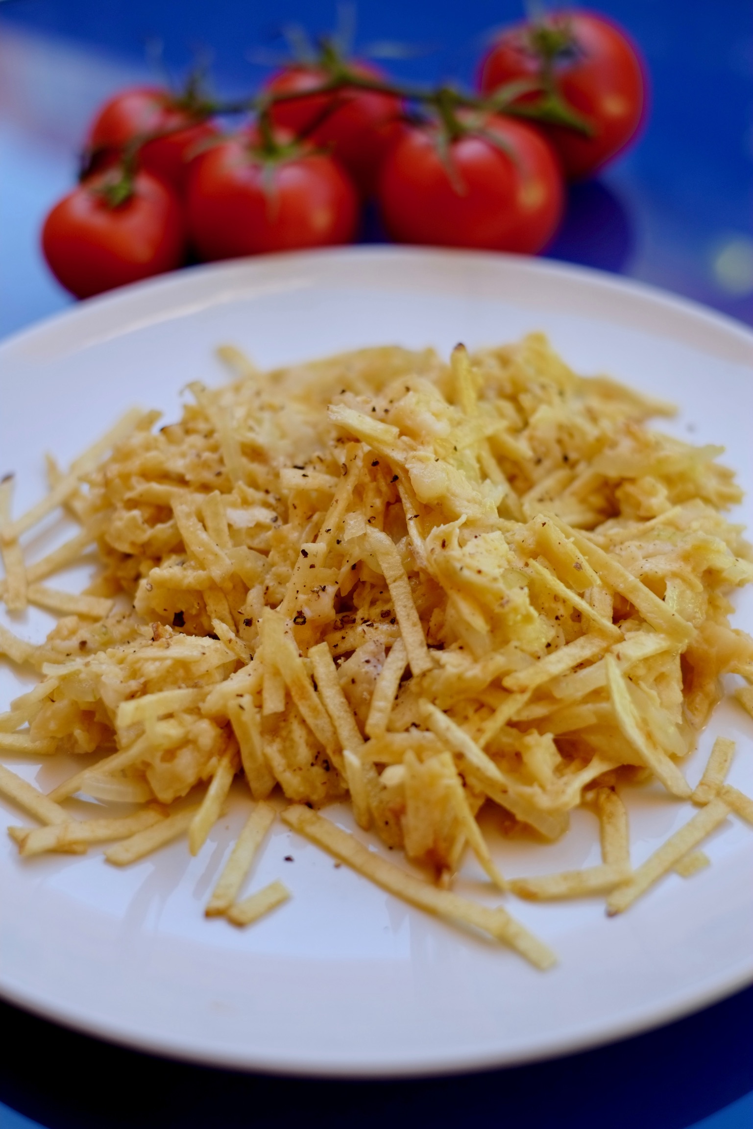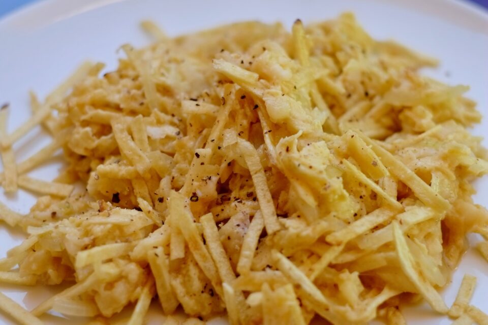 Dzisiaj przepis rodem z Portugalii ale w Andaluzji też jest dość popularny. Oryginalnie przyrządza się to danie z solonej ryby ale gdy nie mamy możemy użyć świeżego lub mrożonego dorsza.