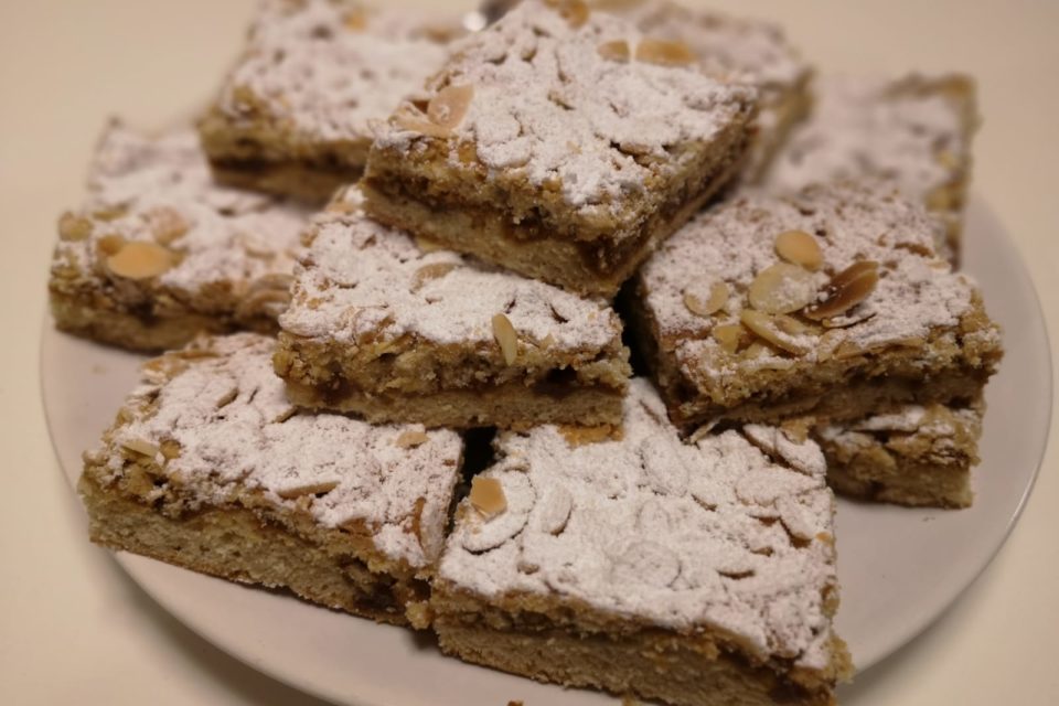 - cukier trzcinowy nierafinowany – 300 g ( 150 g do ciasta, 150 g do nadzienia)