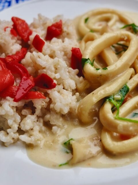 Kalmary w sosie śmietanowo-winnym