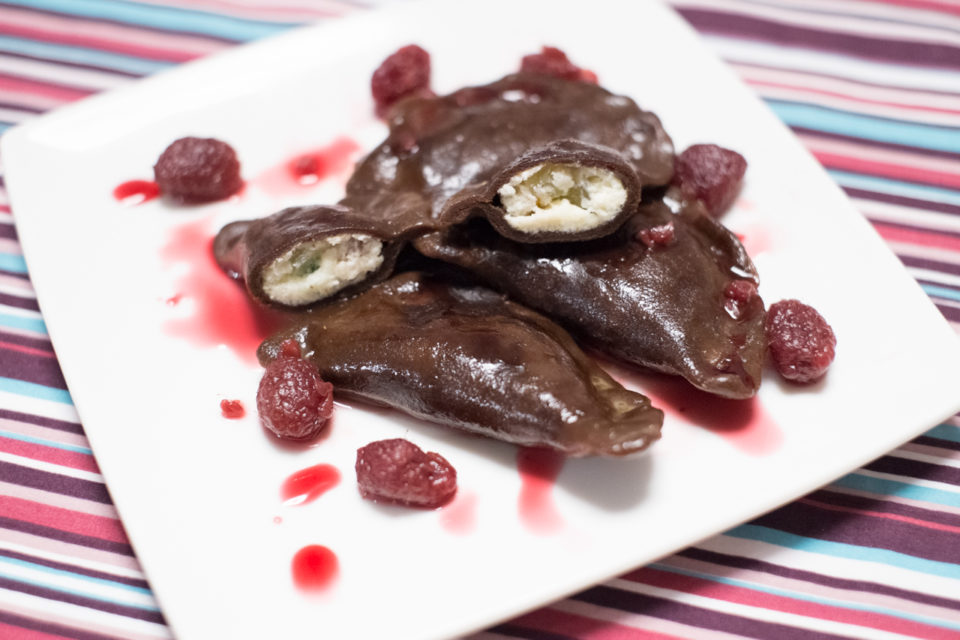 Ciasto pierogowe z dodatkiem kakao. W środku twaróg wymieszany z kaszą jaglaną, rodzynkami i skórką pomarańczową. Polane stopionym masłem wymieszanym z brązowym cukrem smakują jak ambrozja.