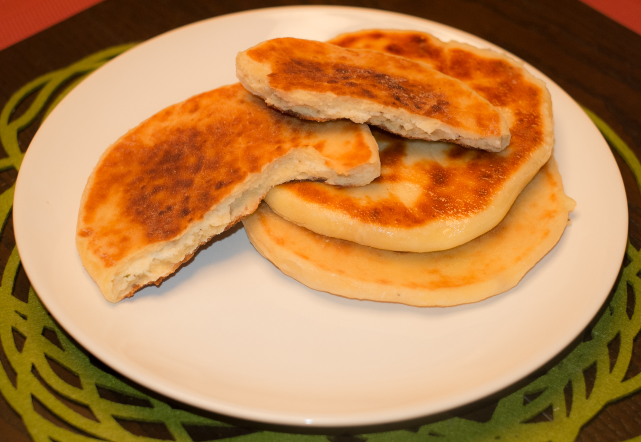 Proste i szybkie placki z nadzieniem serowym. Ja lubię mieszaninę twarogu, mozarelli i żółtego sera. Można też jako nadzienie wykorzystać ugotowane na twardo jajka wymieszane z odrobiną majonezu, szczypiorkiem i doprawione solą i pieprzem . Smaczne są też placki z nadzieniem z ugotowanego ryżu i podsmażonych na maśle z cebulą pieczarkach.