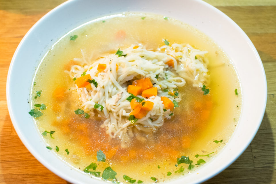 Nic mi się bardziej nie kojarzy z dzieciństwem niż rosół . Niedziela bez rosołu to nie była prawdziwa niedziela. Najlepszy rosół jest z kury wolno gotowany , z dodatkiem włoszczyzny . Podany z domowym makaronem zadowoli każdego.
