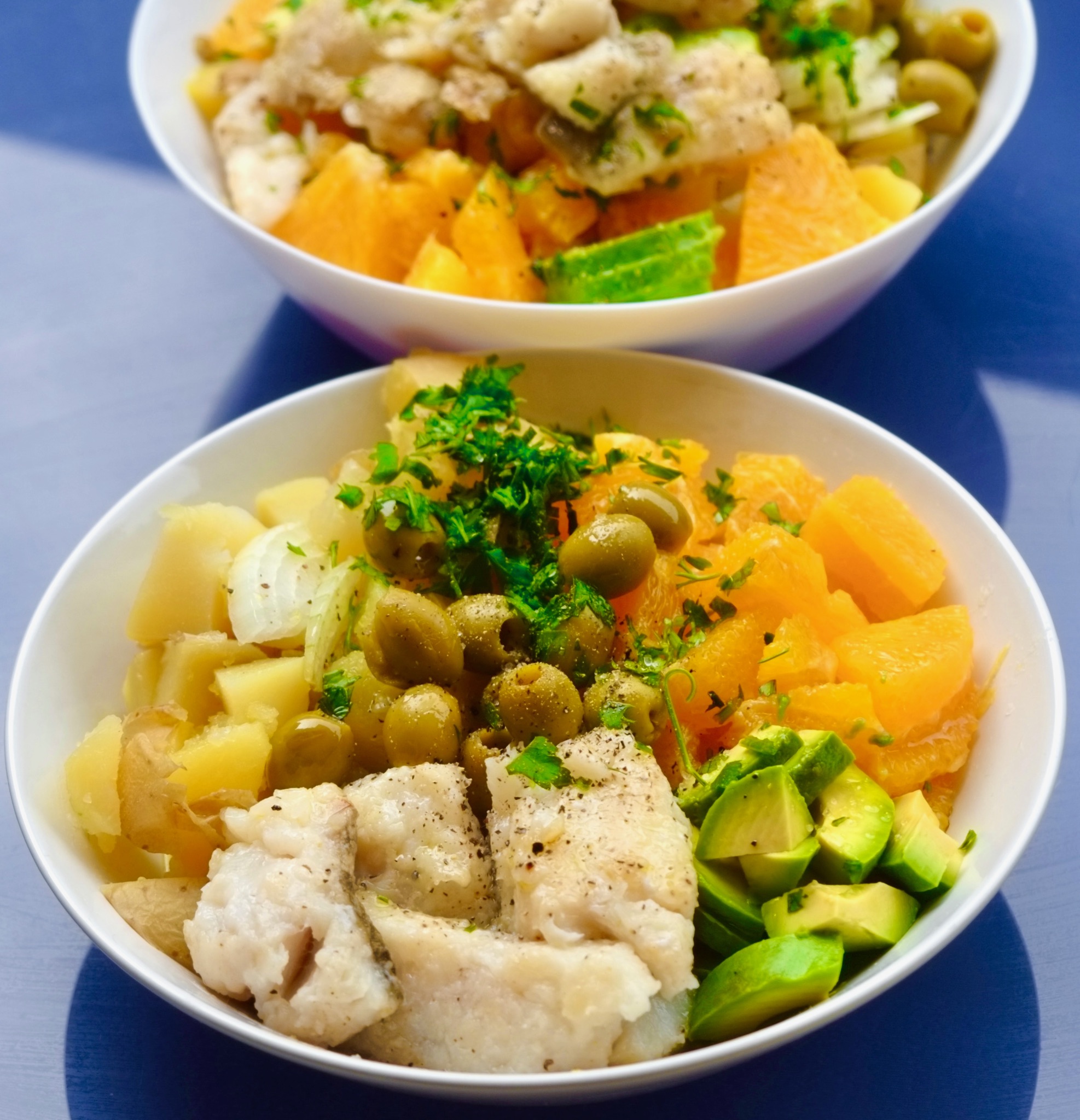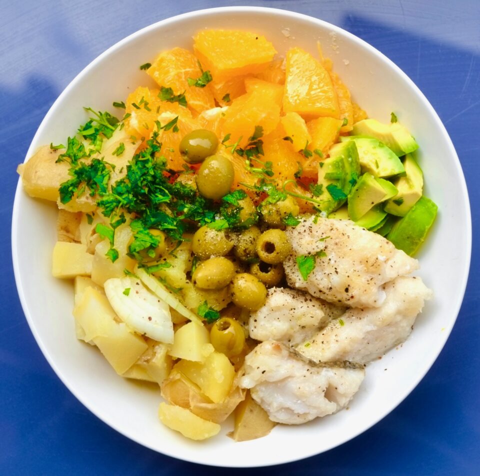Sałatka malageńska jest naprawdę prosta i pyszna. Ziemniaki, ryba, pomarańcze, oliwki, jajka i pyszna oliwa są składnikami tej zdrowej potrawy. Najczęściej jest przygotowywana z solonego dorsza, którego w Polsce trudno dostać. Nie stoi jednak nic na przeszkodzie, aby wykorzystać tutaj świeżą lub mrożoną rybę. Dorsza możemy zamienić na morszczuka lub karmazyna. Od biedy możemy użyć tuńczyka z puszki.