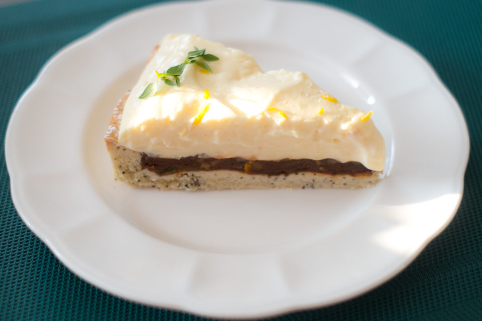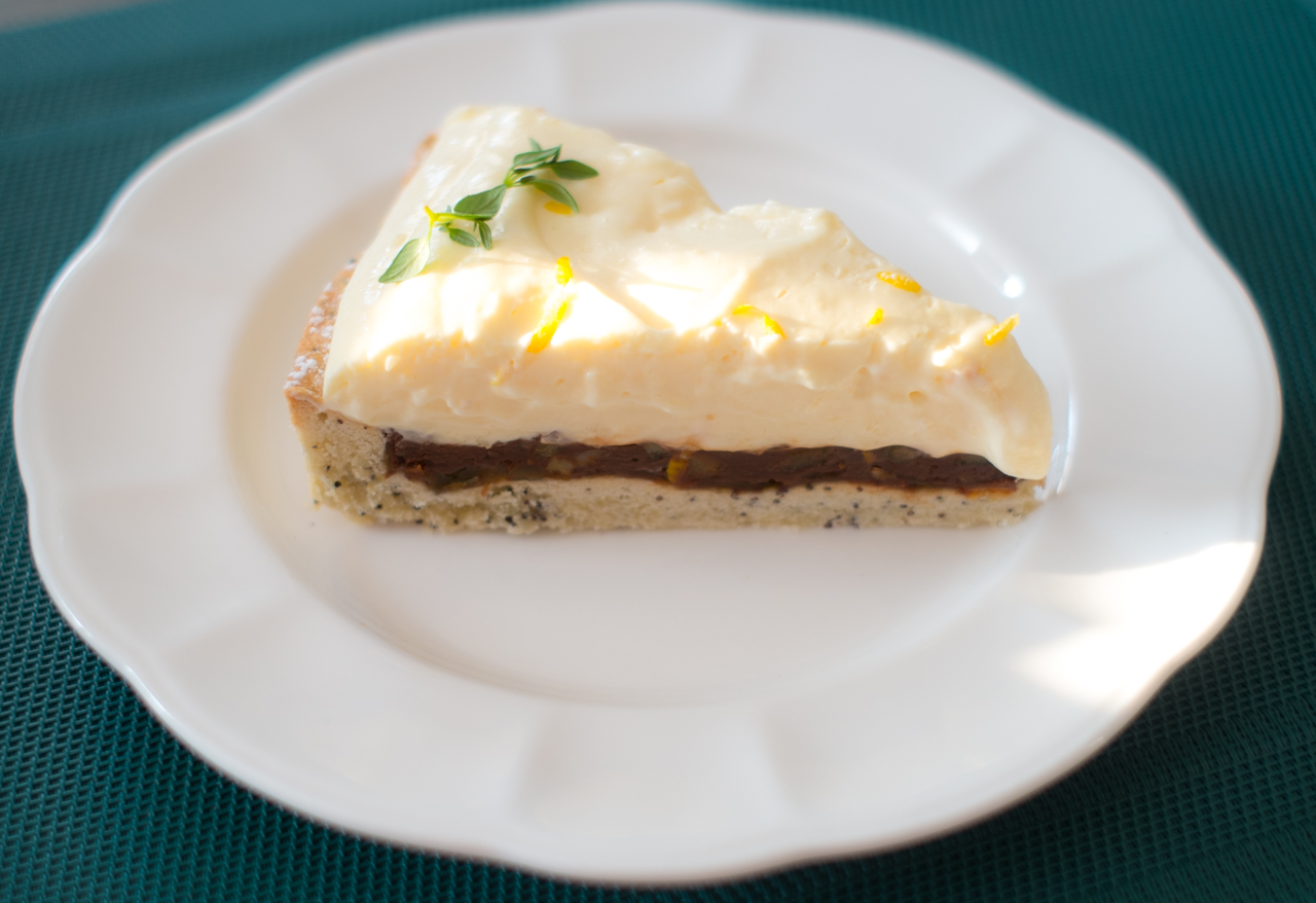 Tarta powstała przez przypadek. Miałem do wykorzystania domowy lemon curd i kruche ciasto z dodatkiem maku. Był oczywiście i domowy dżem morelowy oraz wyłuskane orzechy włoskie. Efekt końcowy przerósł moje oczekiwania. Ciasto jest wspaniałe. Lekki kruchy spód wspaniale komponuje się z czekolada , orzechami i lekkim kremem cytrynowym. Spód na tartę można upiec wcześniej , a samo ciasto wykończyć na dwie godziny przed podaniem.