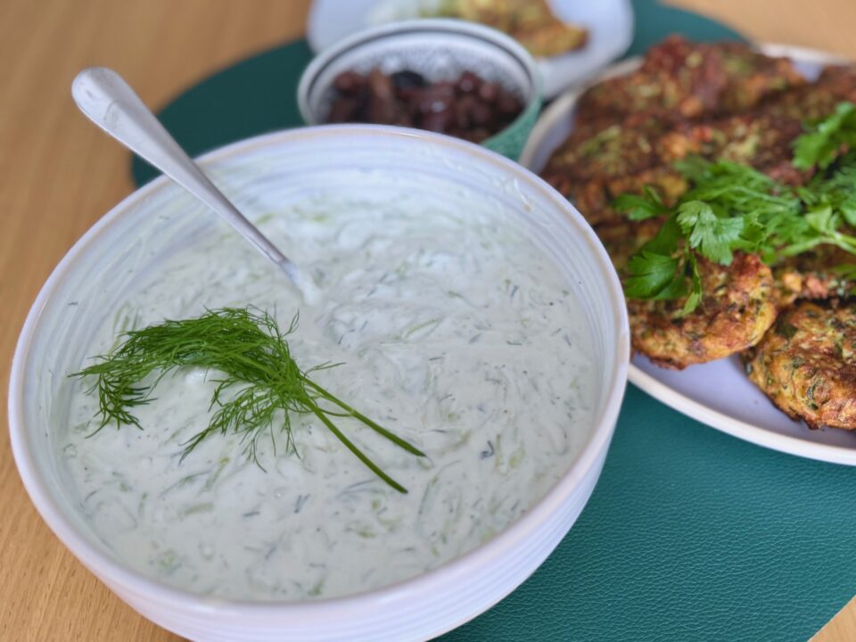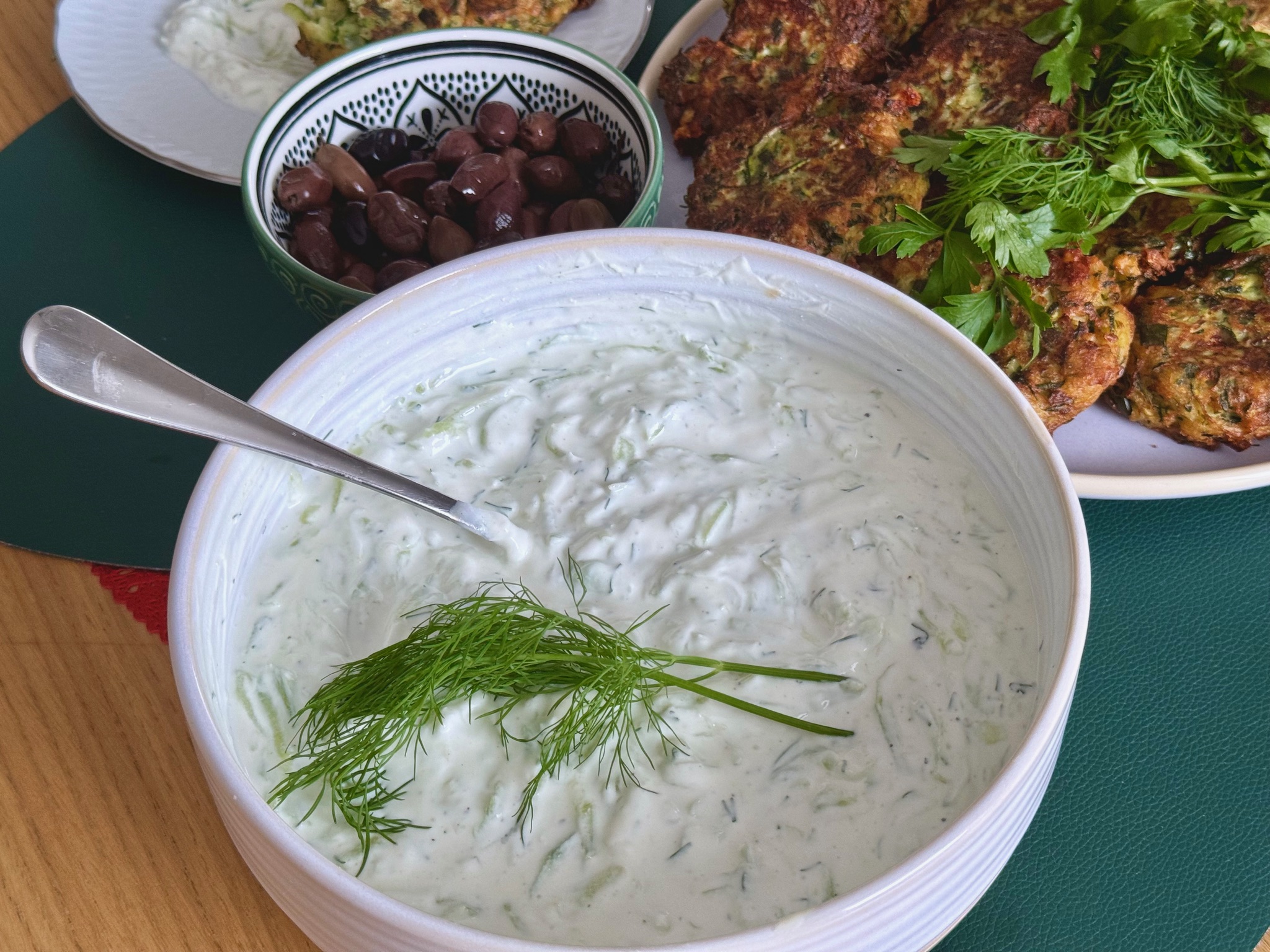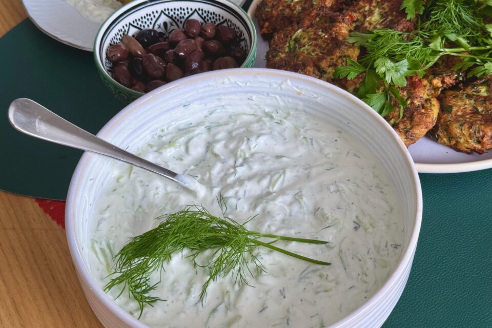 Jeden z podstawowych sosów kuchni greckiej. Jest prosty i pełen smaku. Ja przyrządzam go z koperkiem i miętą ale można też bez żadnych ziół.