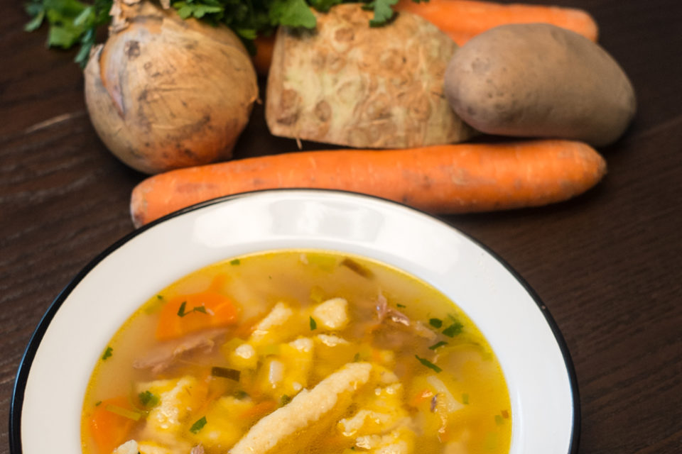 - 3 litry rosołu ( drobiowy, wołowy, możemy wykorzystać do zupy również mięso z rosołu)